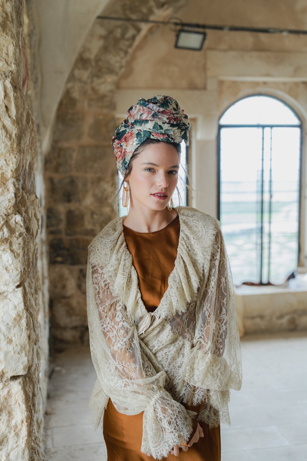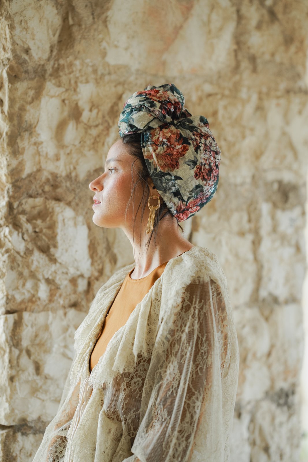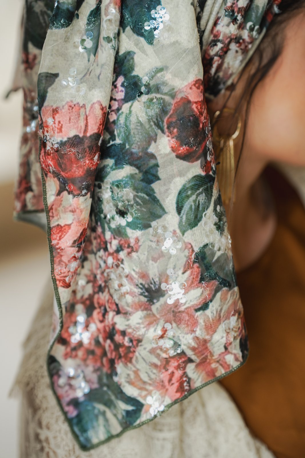 הגוונים הטבעיים יוצרים תחושה של אור רך וחמים. הדפס אלגנטי ואצילי, נשי ורומנטי.