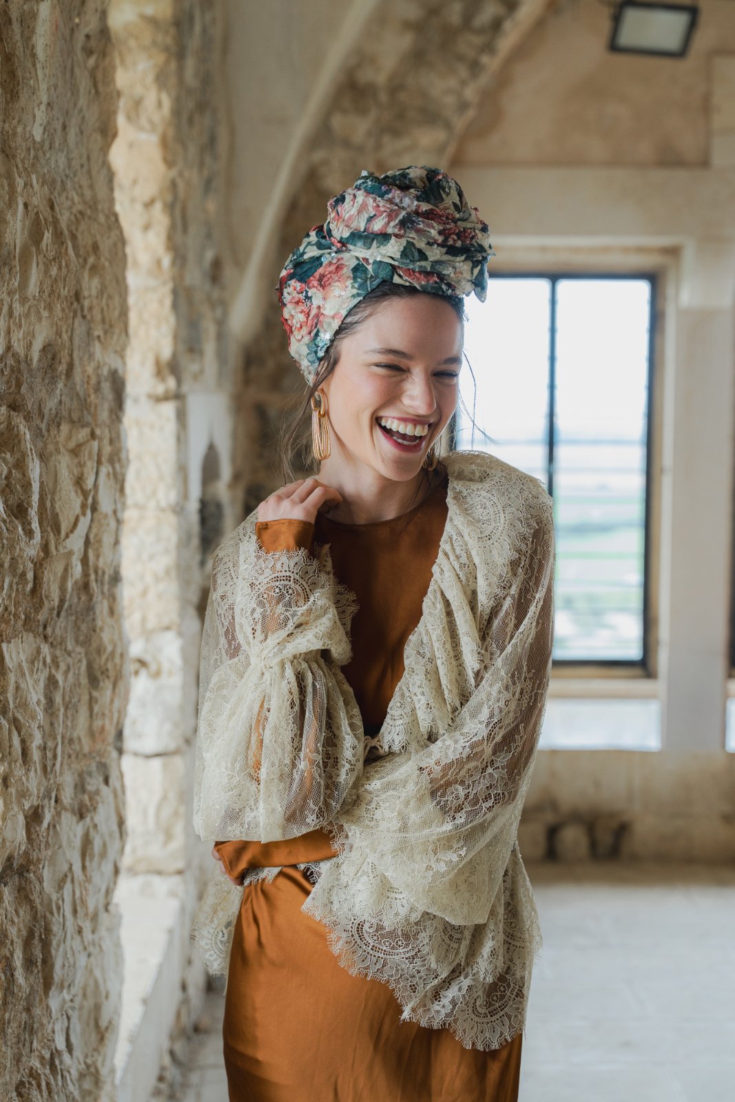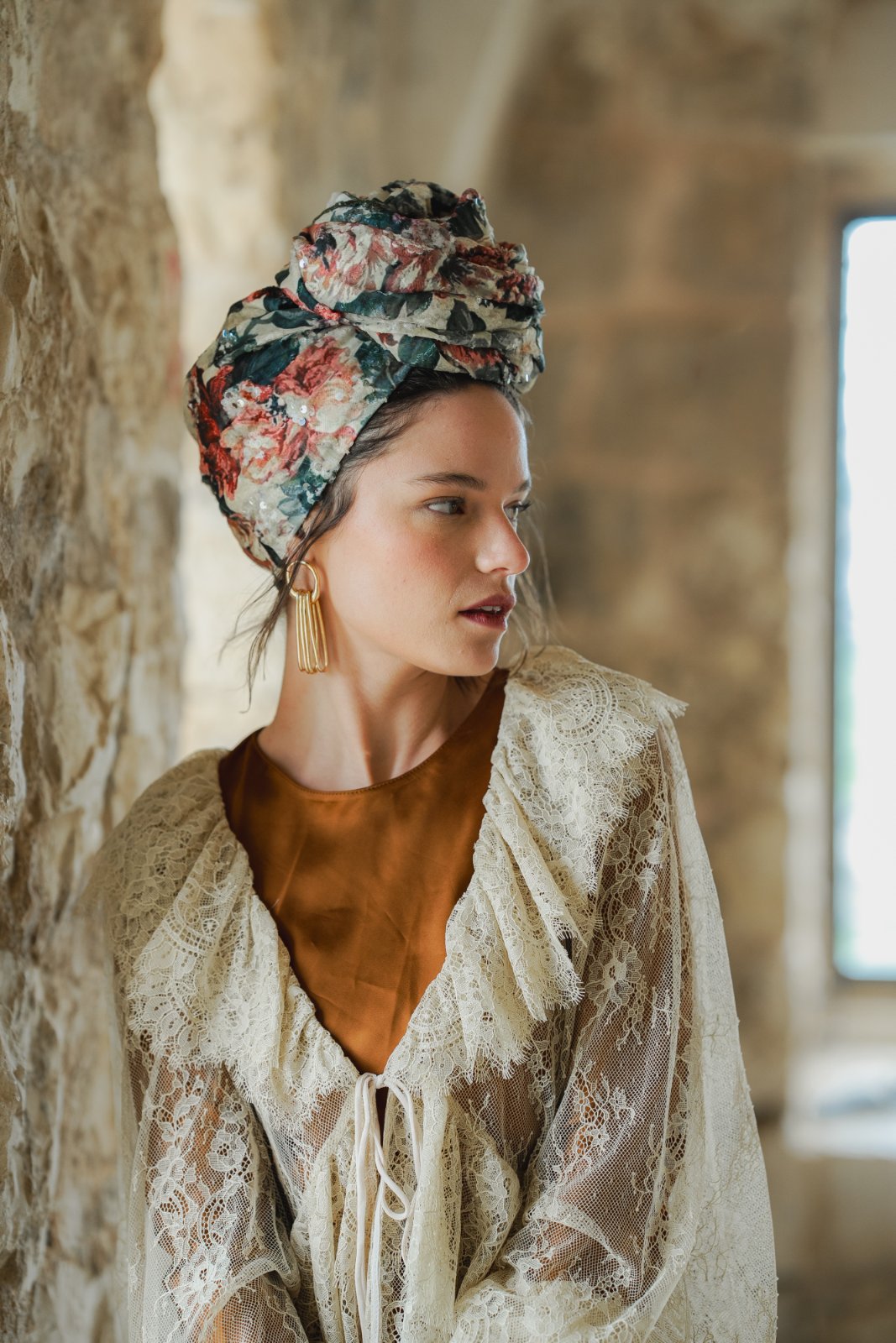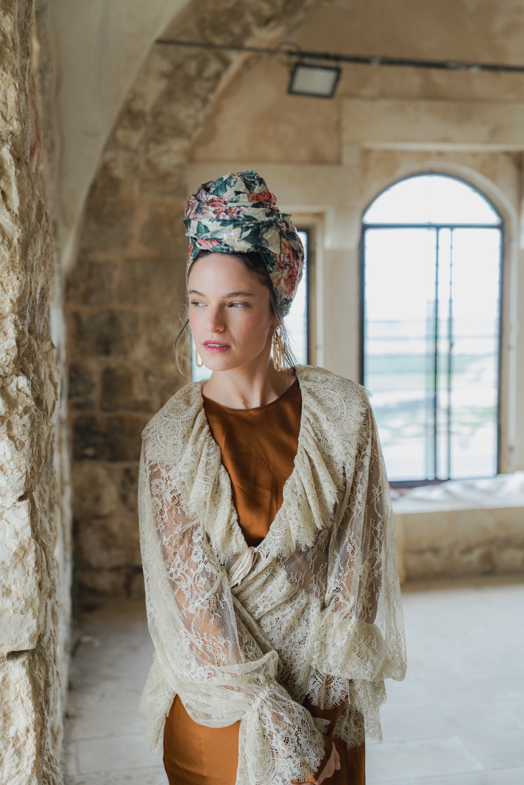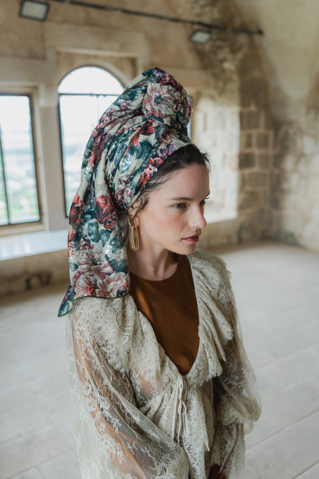 הגוונים הטבעיים יוצרים תחושה של אור רך וחמים. הדפס אלגנטי ואצילי, נשי ורומנטי.