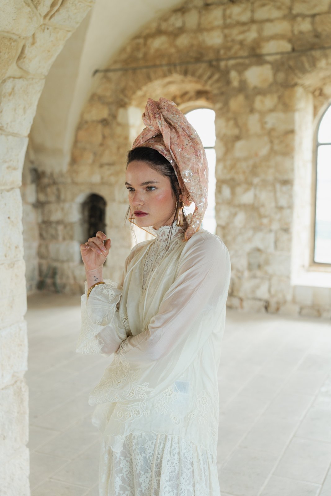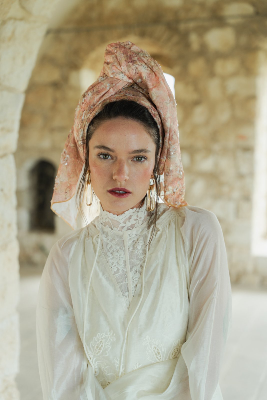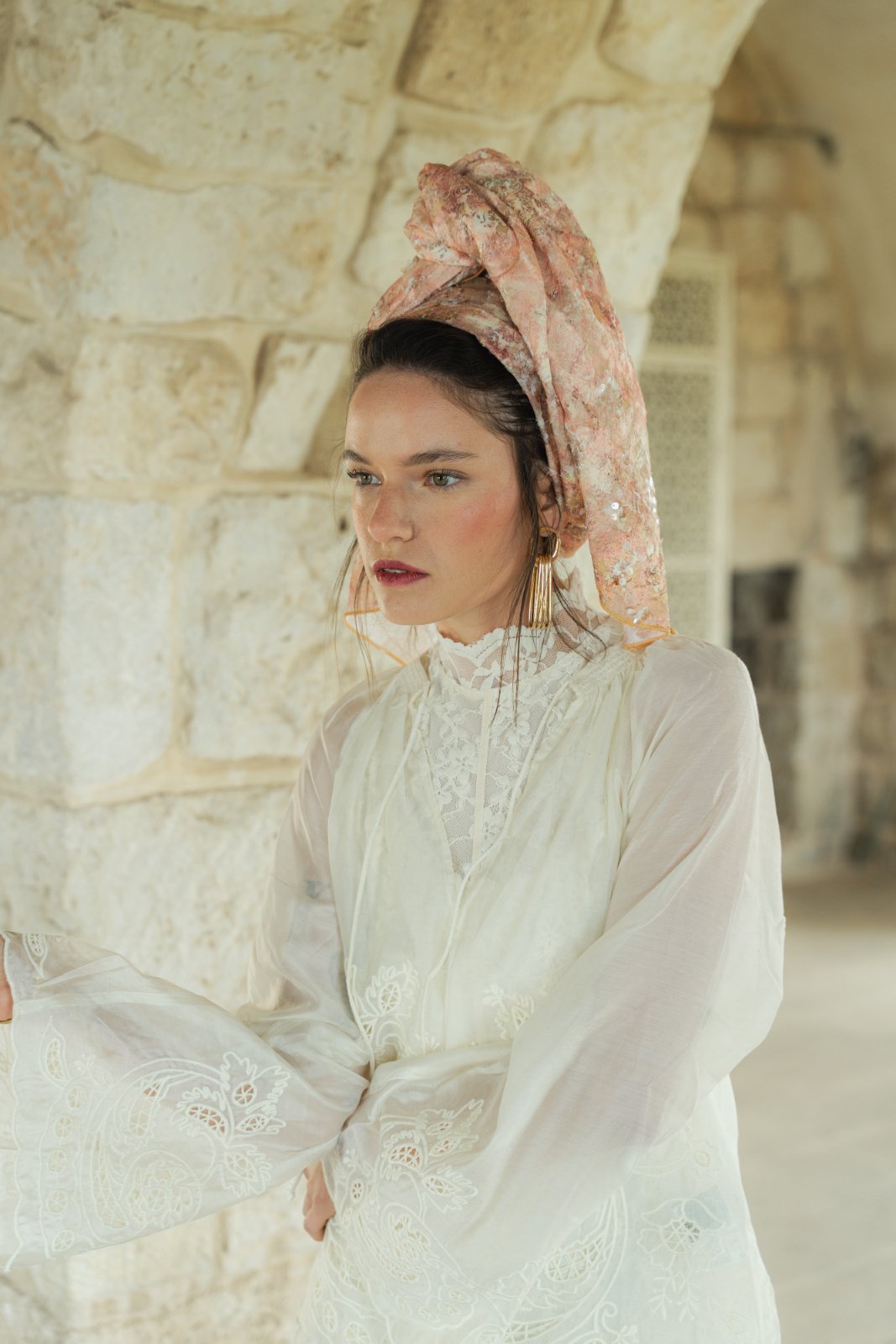 גוונים בהירים של אפרסקיות, חול בהיר, ורוד עתיק ונגיעות זהב בהיר.