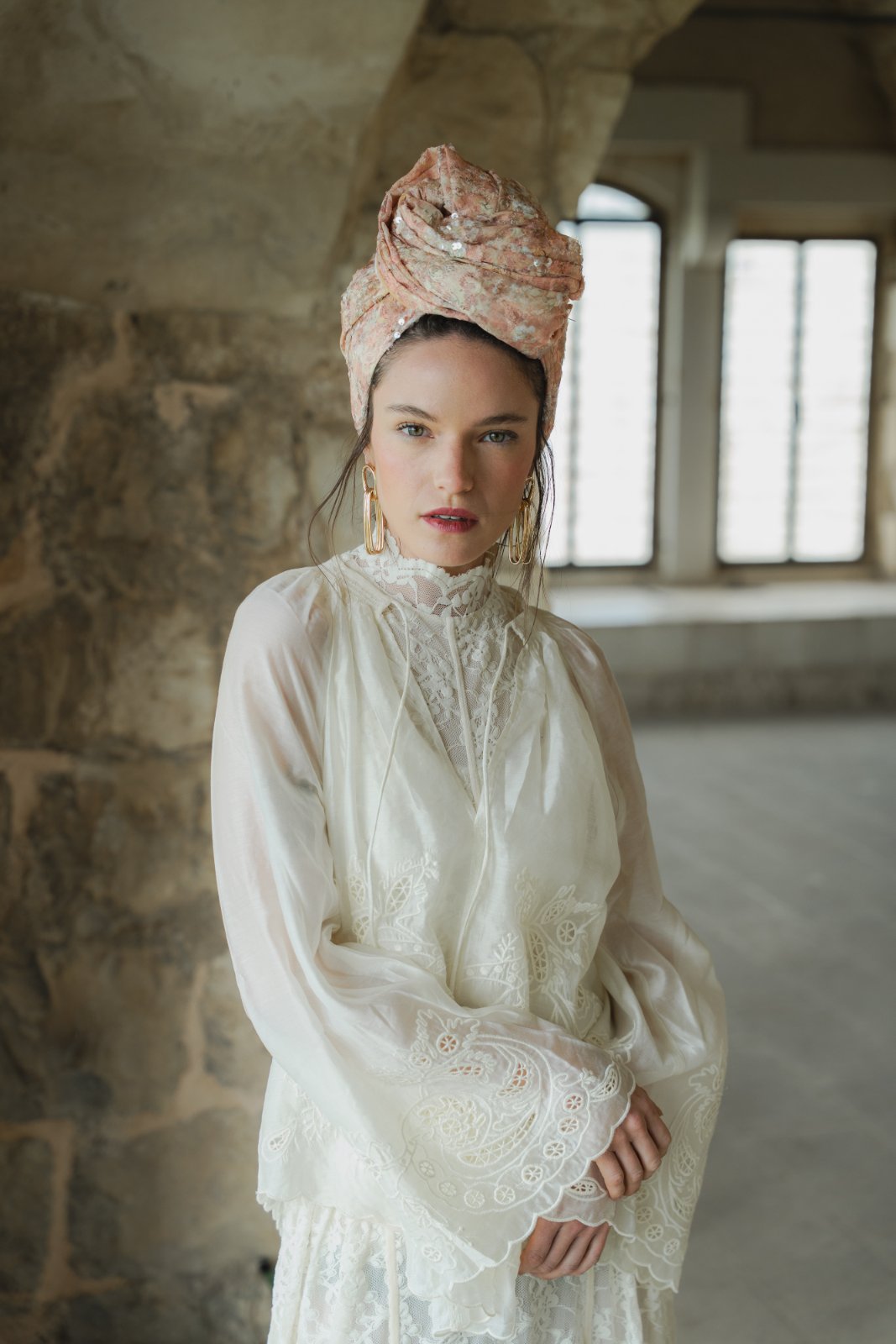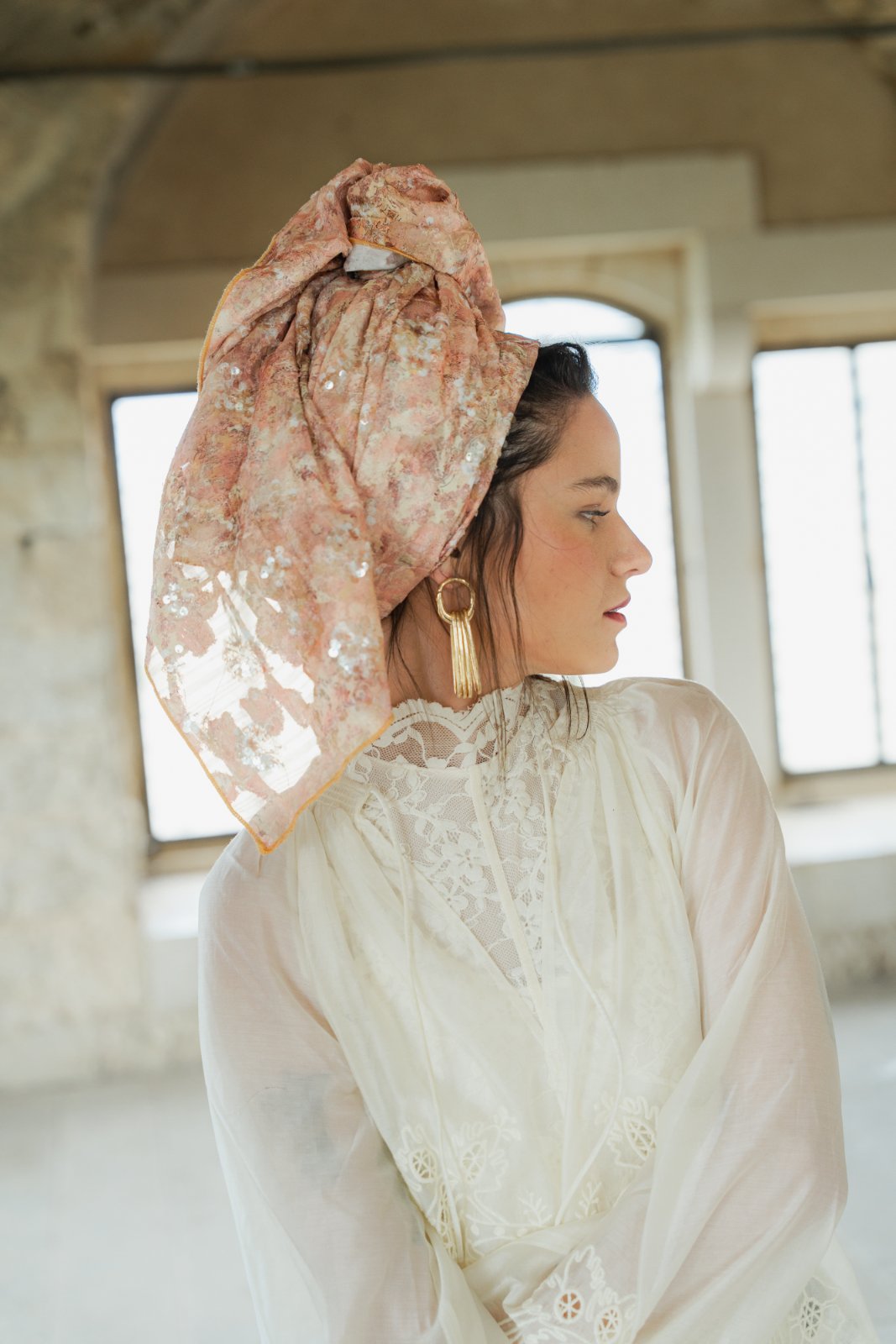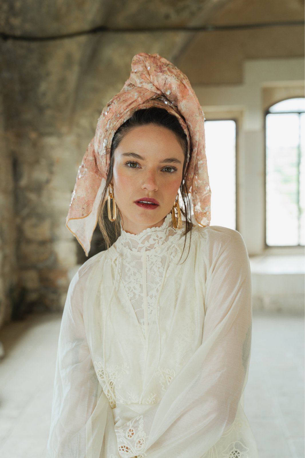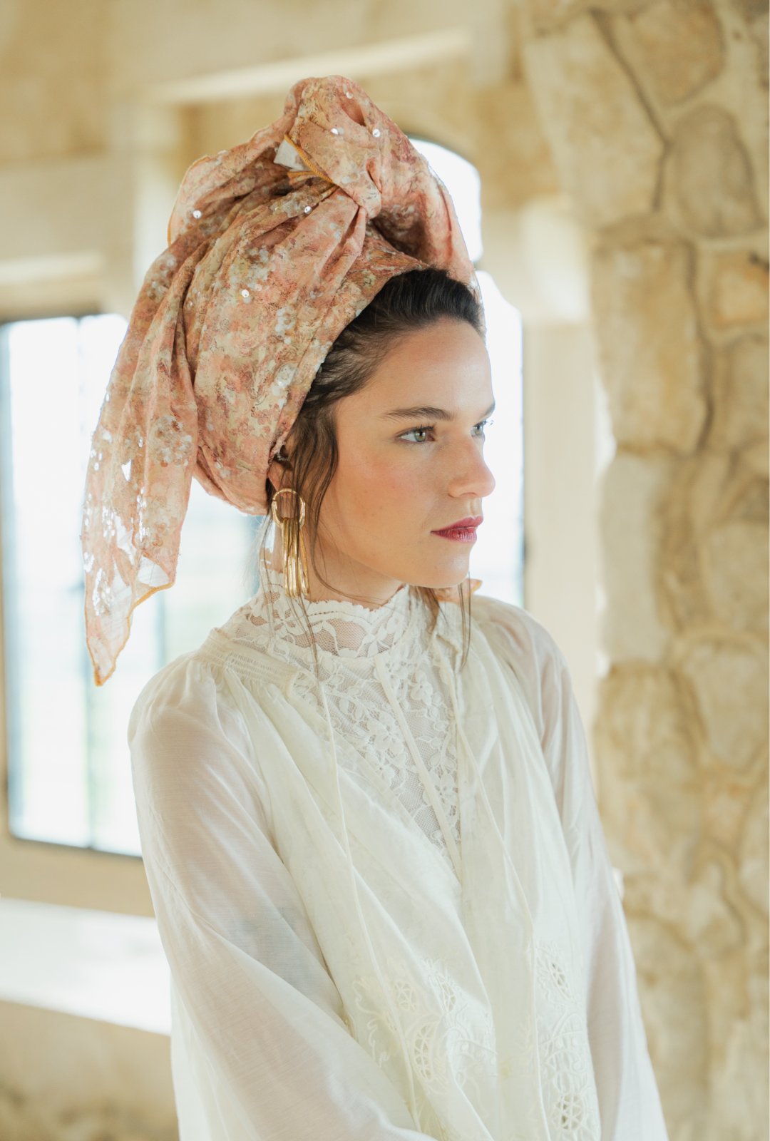 גוונים בהירים של אפרסקיות, חול בהיר, ורוד עתיק ונגיעות זהב בהיר.