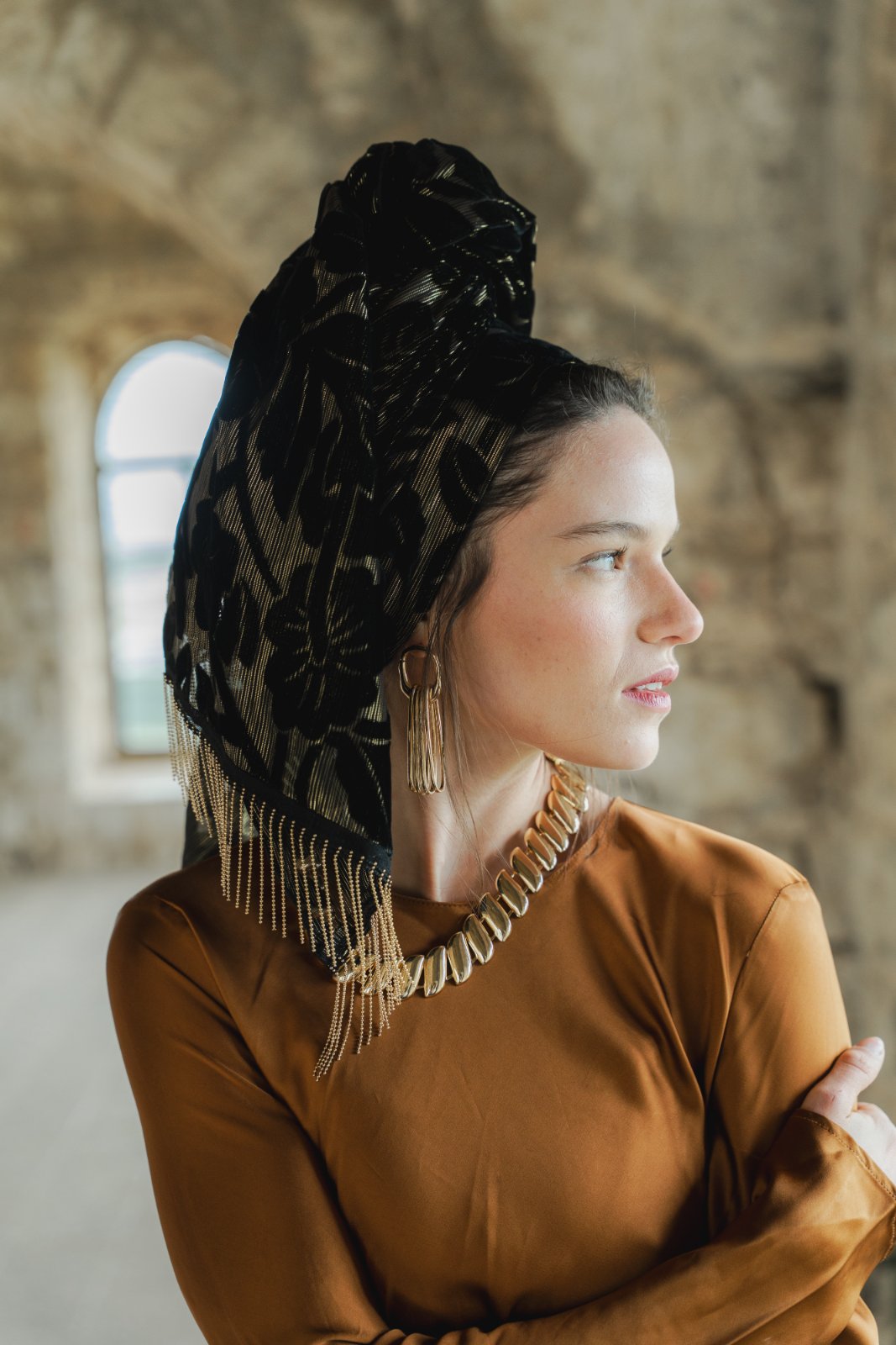 מטפחת שמשדרת יוקרתיות, אלגנטיות יחד עם רוך וקלאסיות.