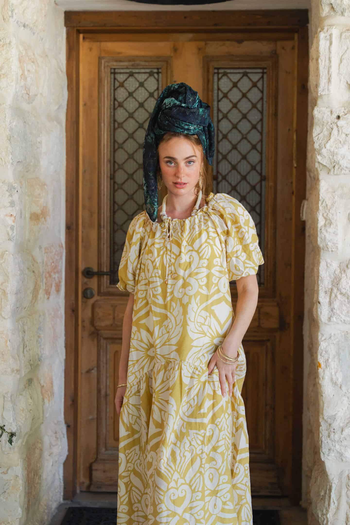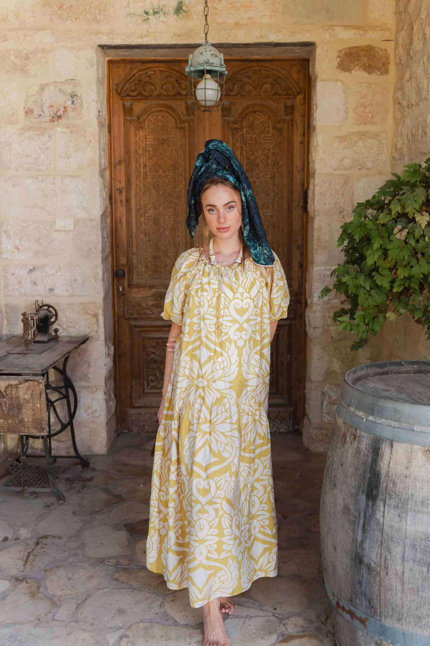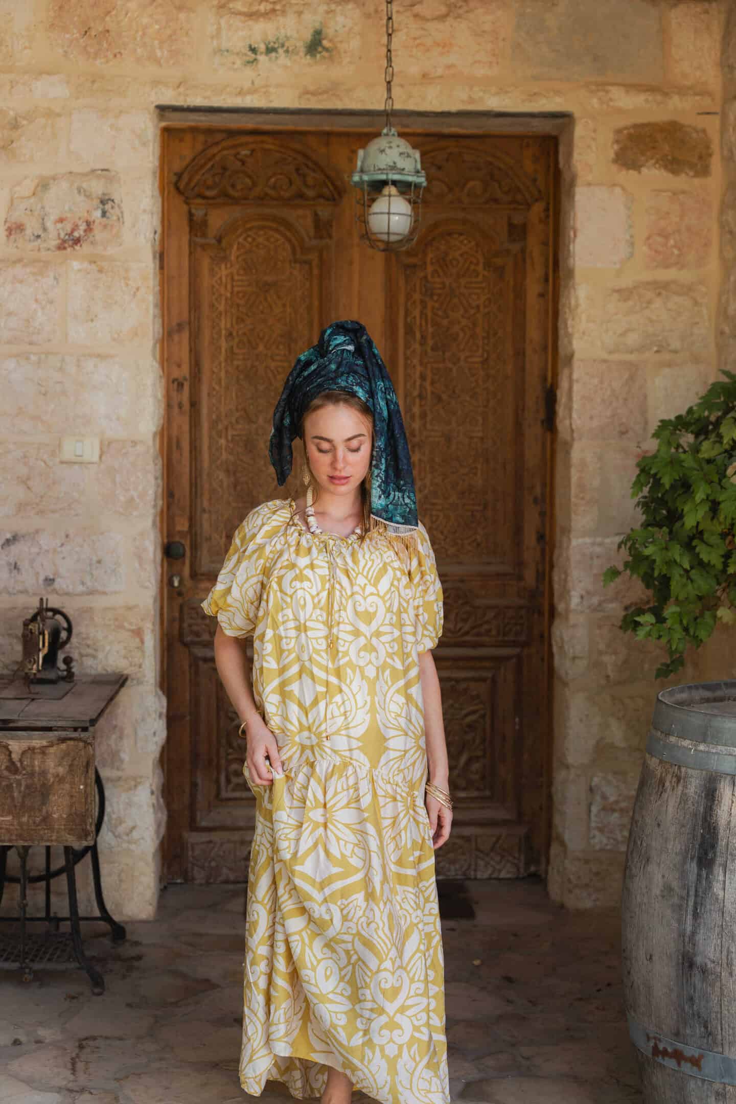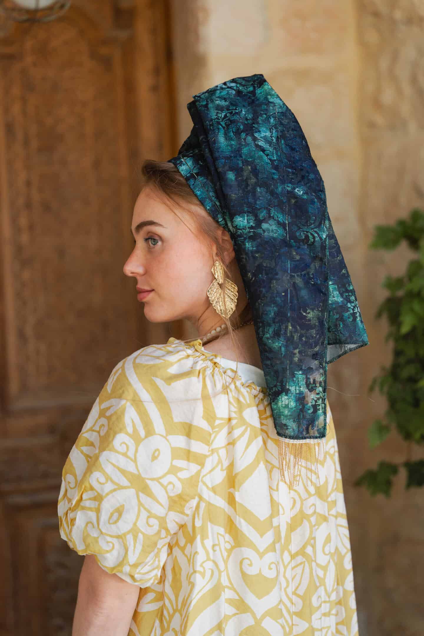 מטפחת על זמנית שמודפסת על בד רקמה עדין ונוח לקשירה.