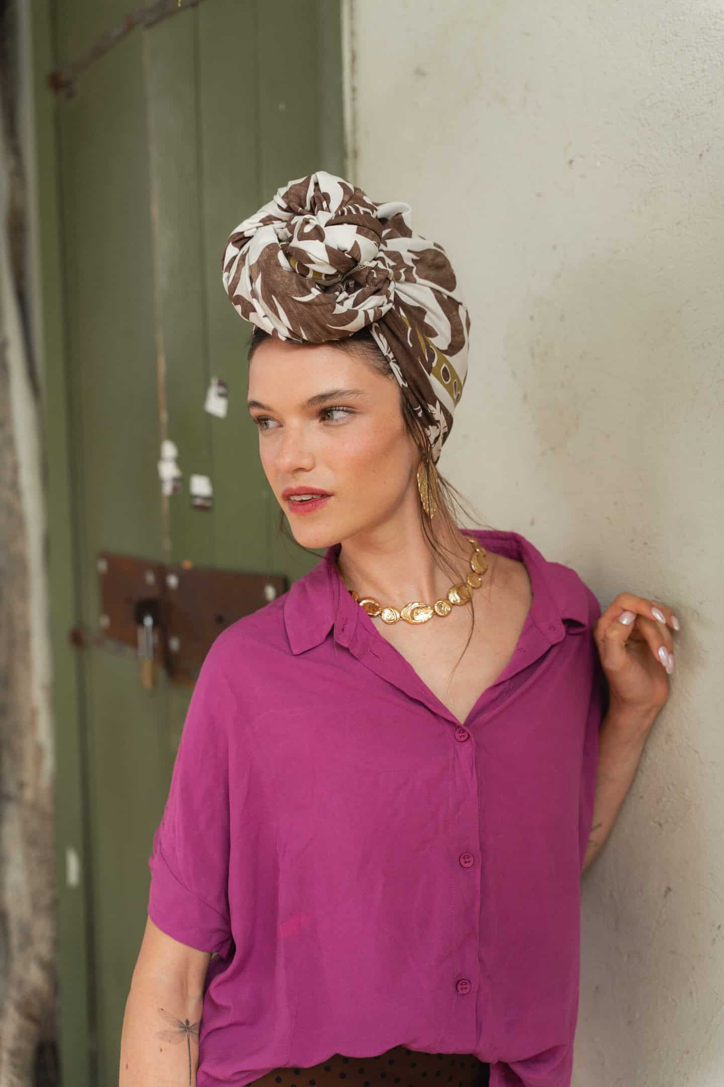 בד כותנה עם הדפס מטריף !! עיטורי חום מוברש בתוספת עיטור ייחודי בסוף הבד.