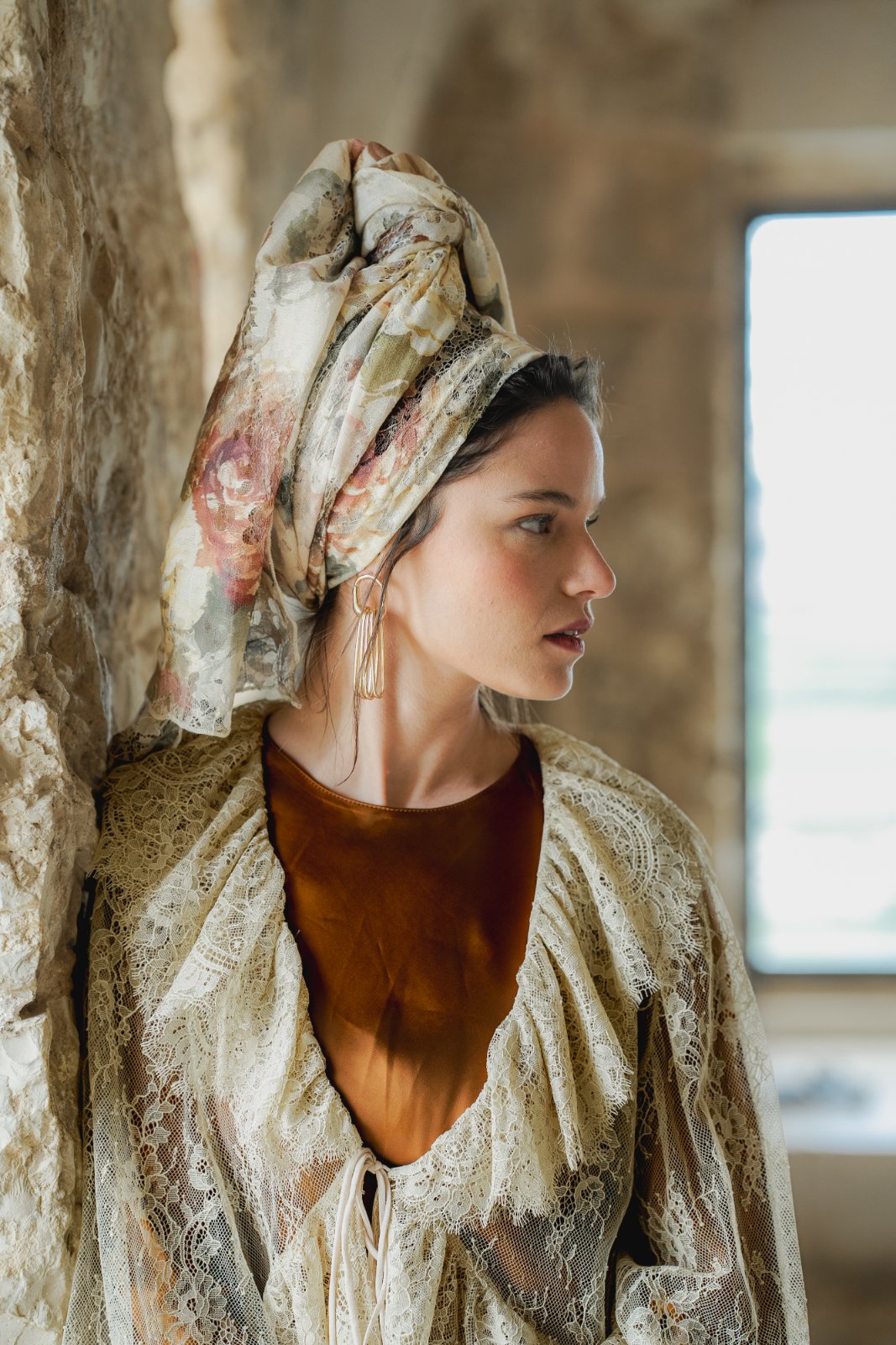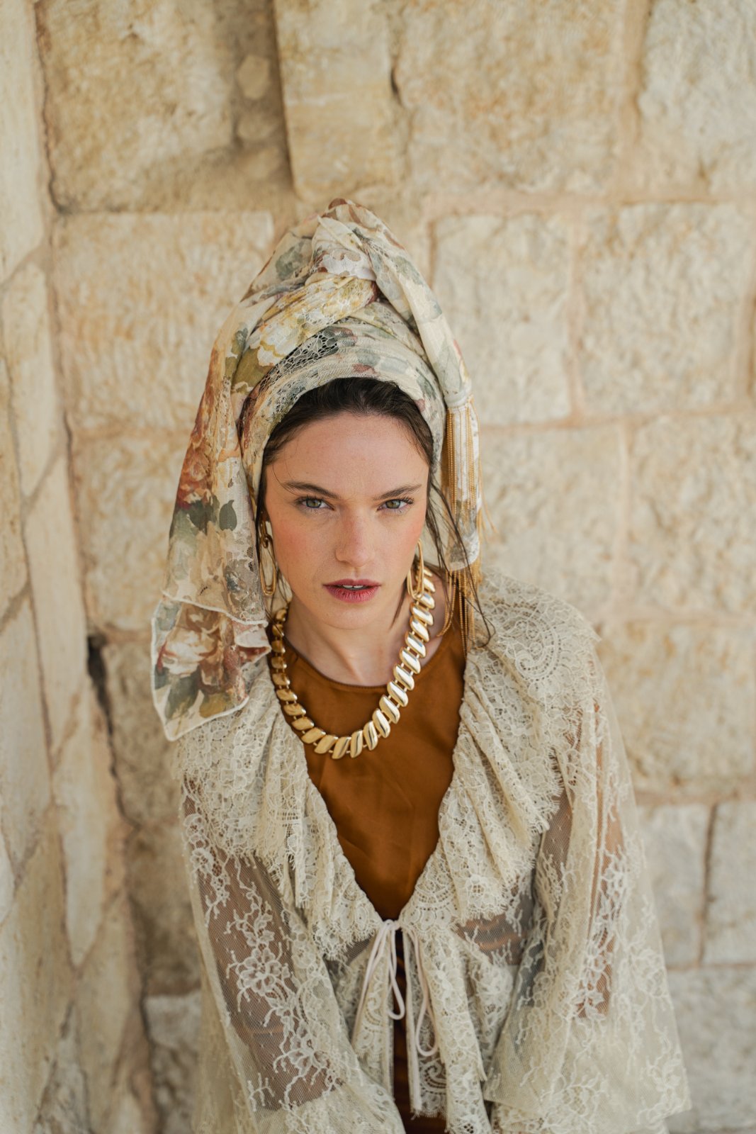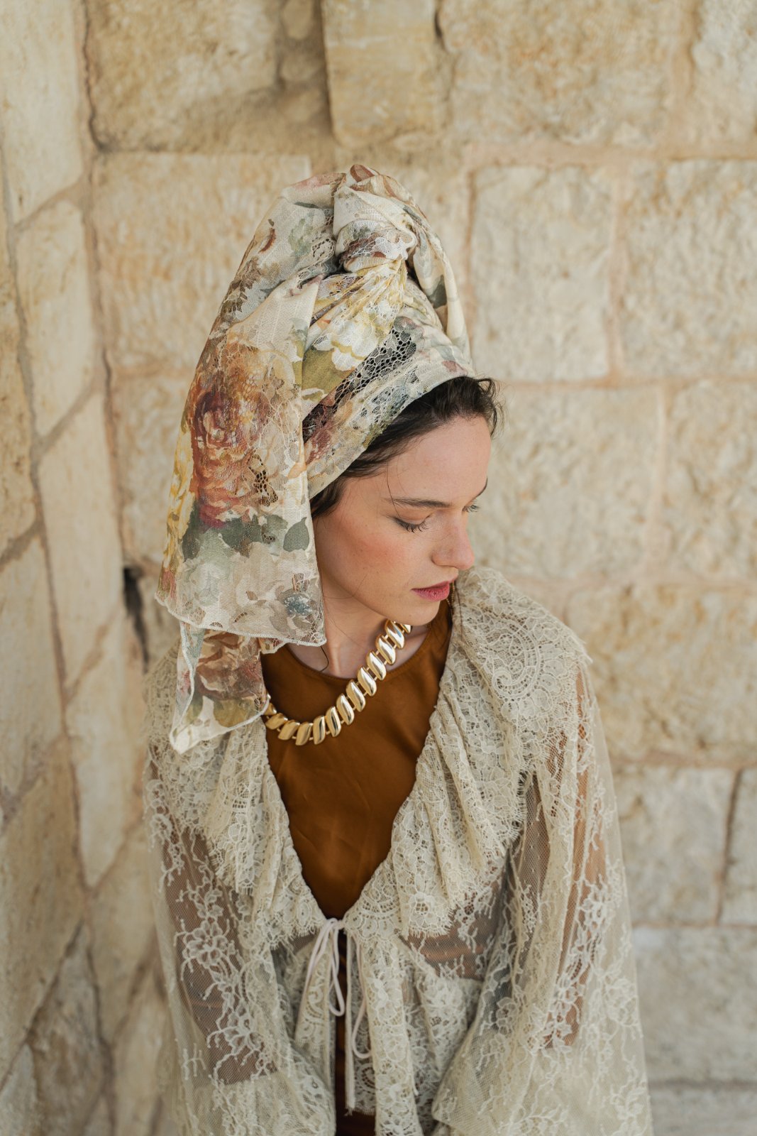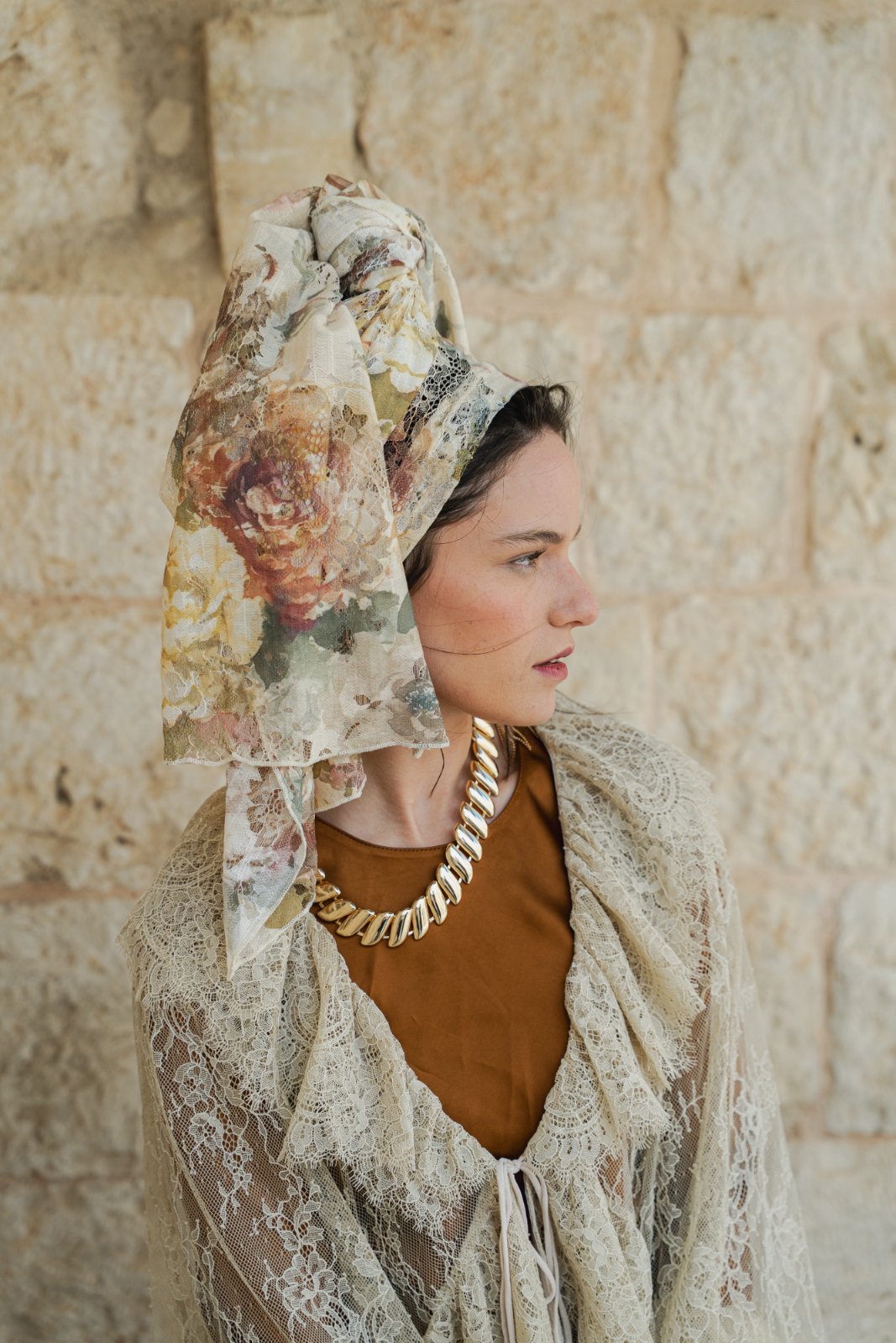 מטפחת מבד תחרה טבעי, עשירה ויפייפיה. עומק וציוריות מיוחדת.