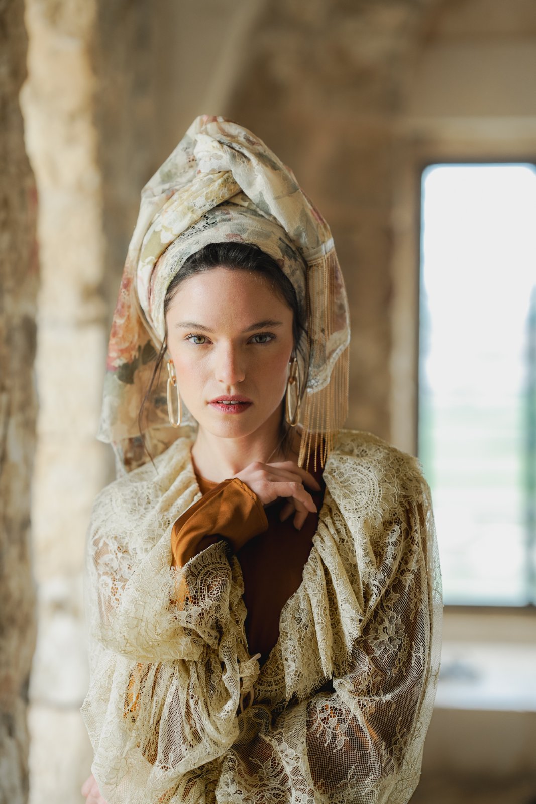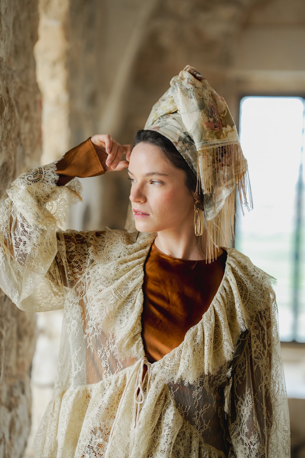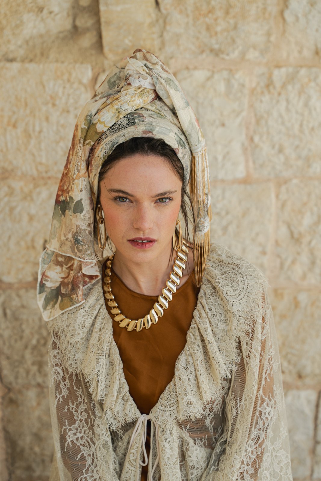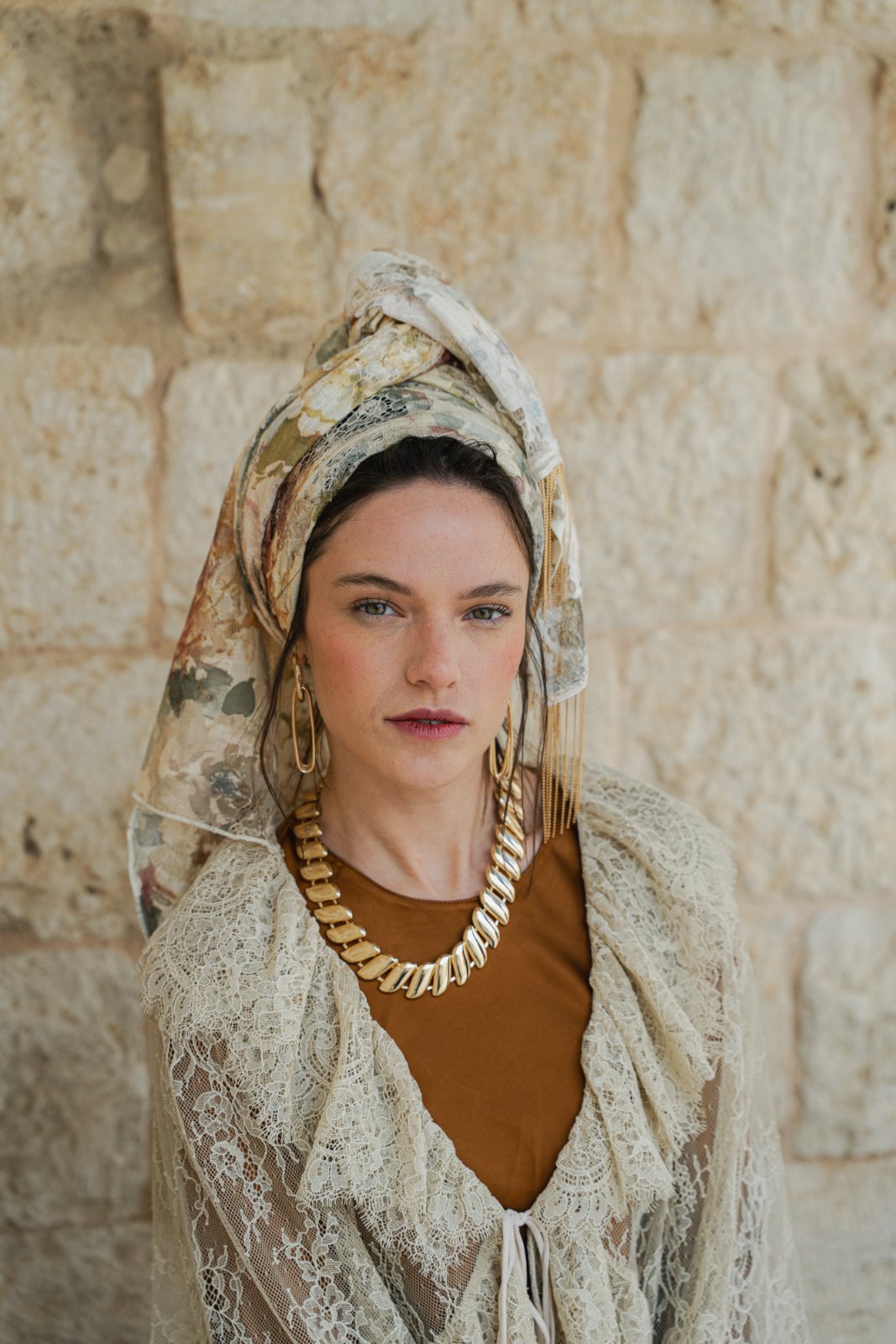 מטפחת מבד תחרה טבעי, עשירה ויפייפיה. עומק וציוריות מיוחדת.