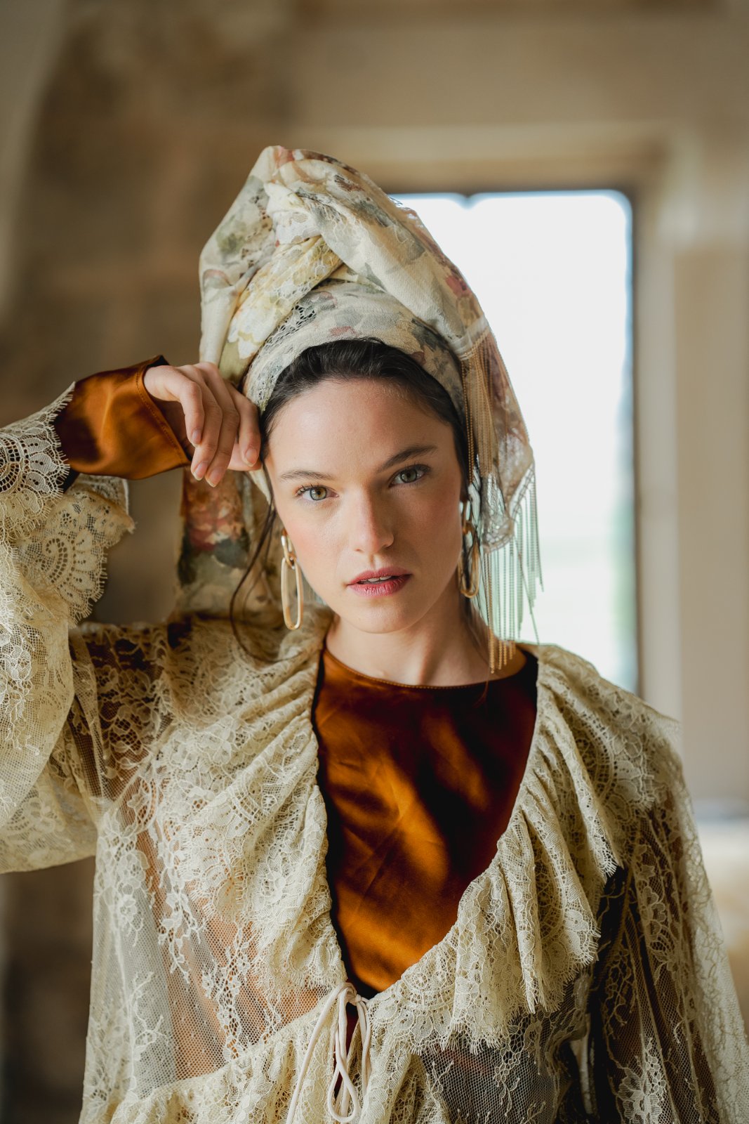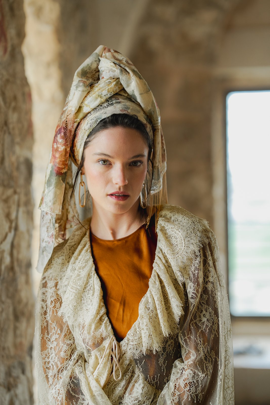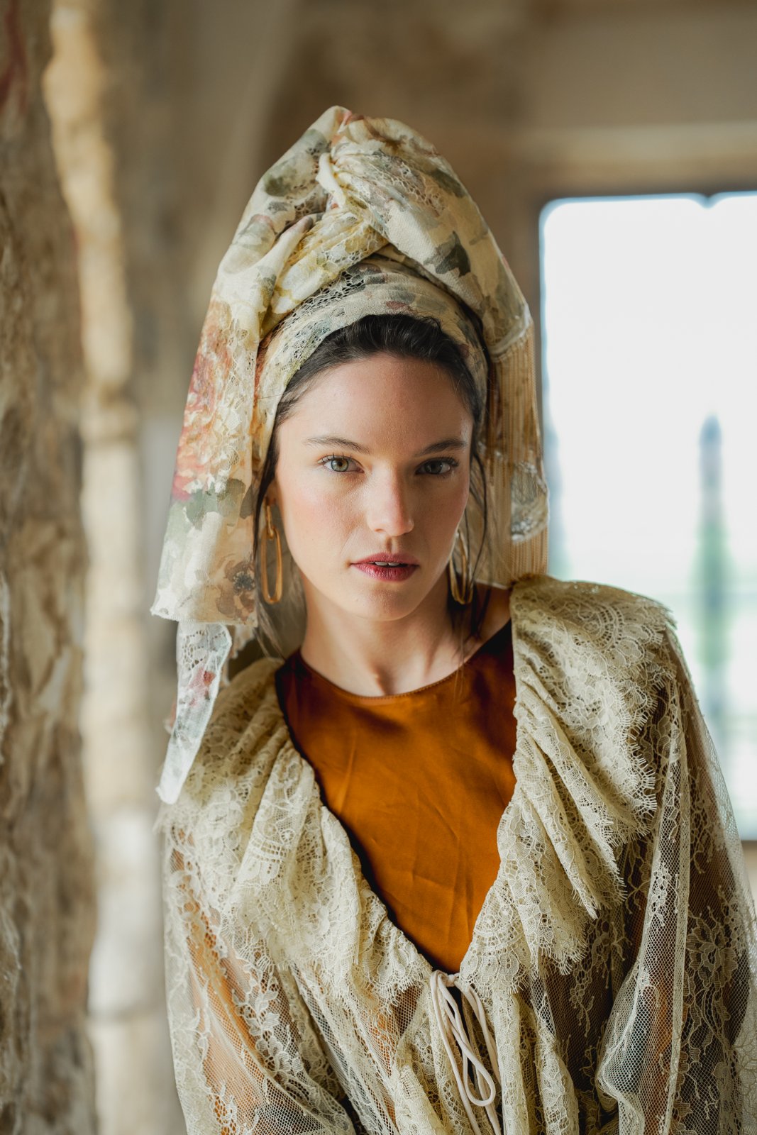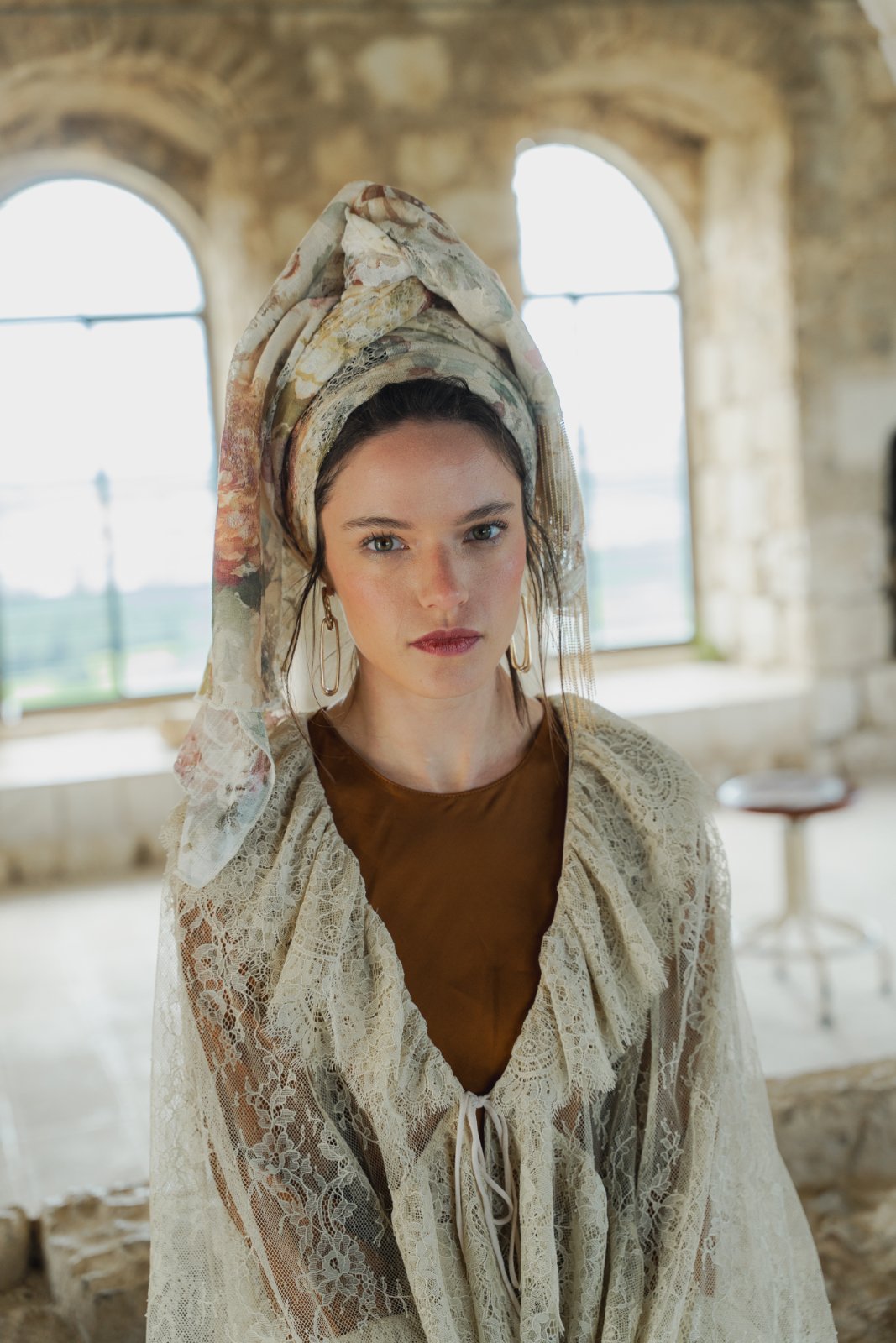 מטפחת מבד תחרה טבעי, עשירה ויפייפיה. עומק וציוריות מיוחדת.